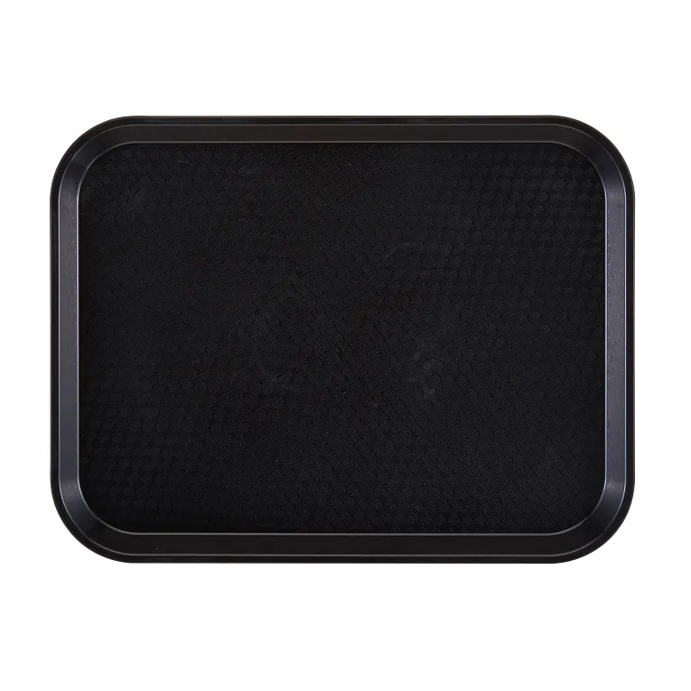 This black Cambro customizable fast-food tray is the perfect complement to any cafeteria, buffet, fast food restaurant, or snack bar. It is made of durable polypropylene with a textured surface, to help prevent spills.