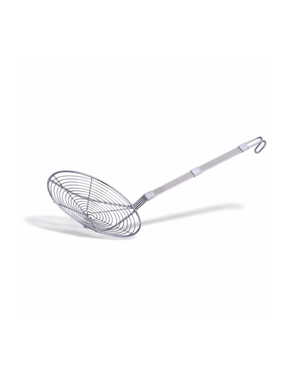 Extensive range of professional kitchen utensils, mainly made of stainless steel, including slotted spoons of great strength and durability, designed for intensive use