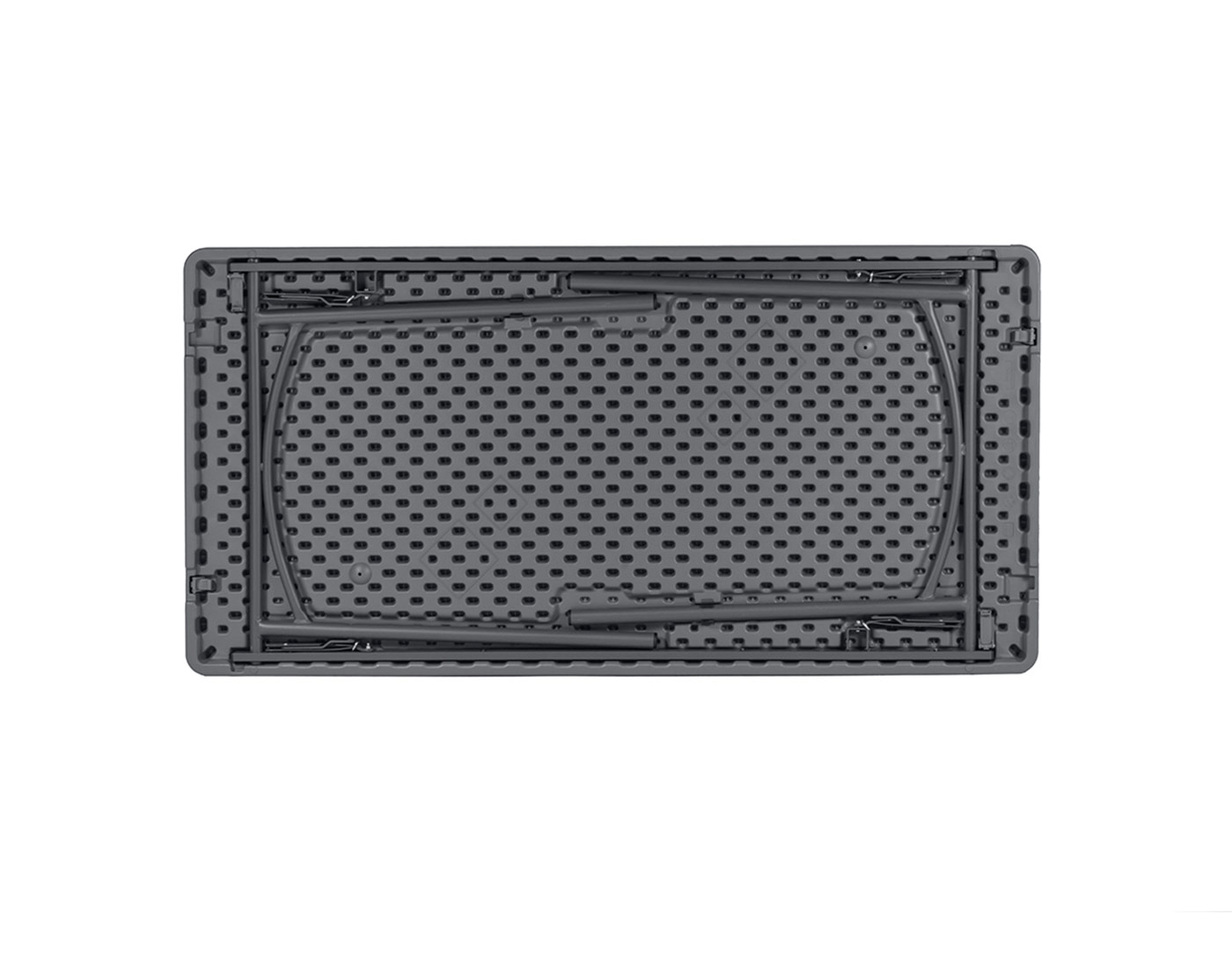 Rectangular folding table, 152 x 76 cm. By joining two tables crosswise, a square composition measuring 152 x 152 cm for 8 people is created. Ideal for events, restaurants or corporate meetings
