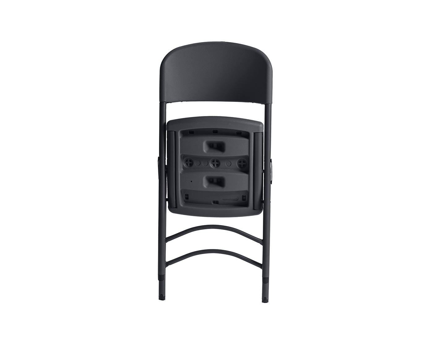 Folding chair with polyethylene seat and backrest. Spacious, sturdy and comfortable. Designed with comfort in mind if seated for several hours. Built-in handhold. Suitable for events, conferences and banquets.