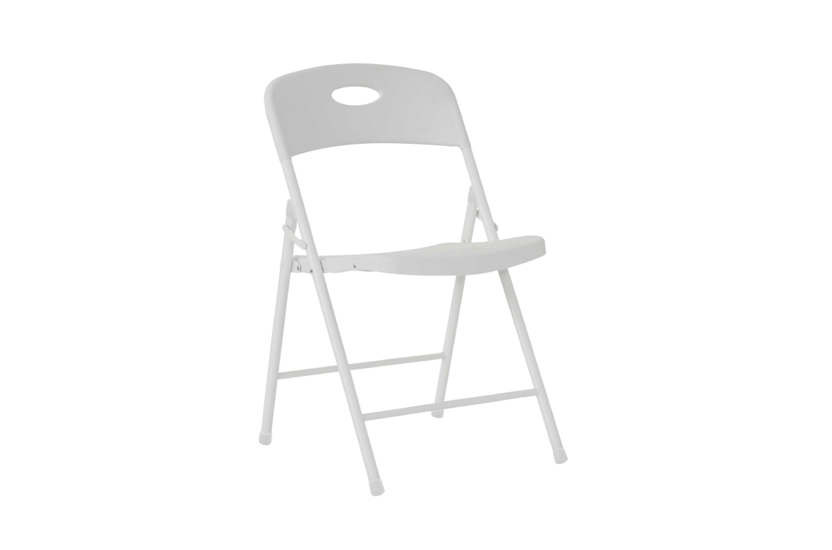 Folding chair with polypropylene seat and backrest. Very lightweight chair, easy to handle and store. Backrest with handhold. Ideal for events, celebrations and functions that require fast and easy assembly and disassembly. Available in white, black and dark grey.